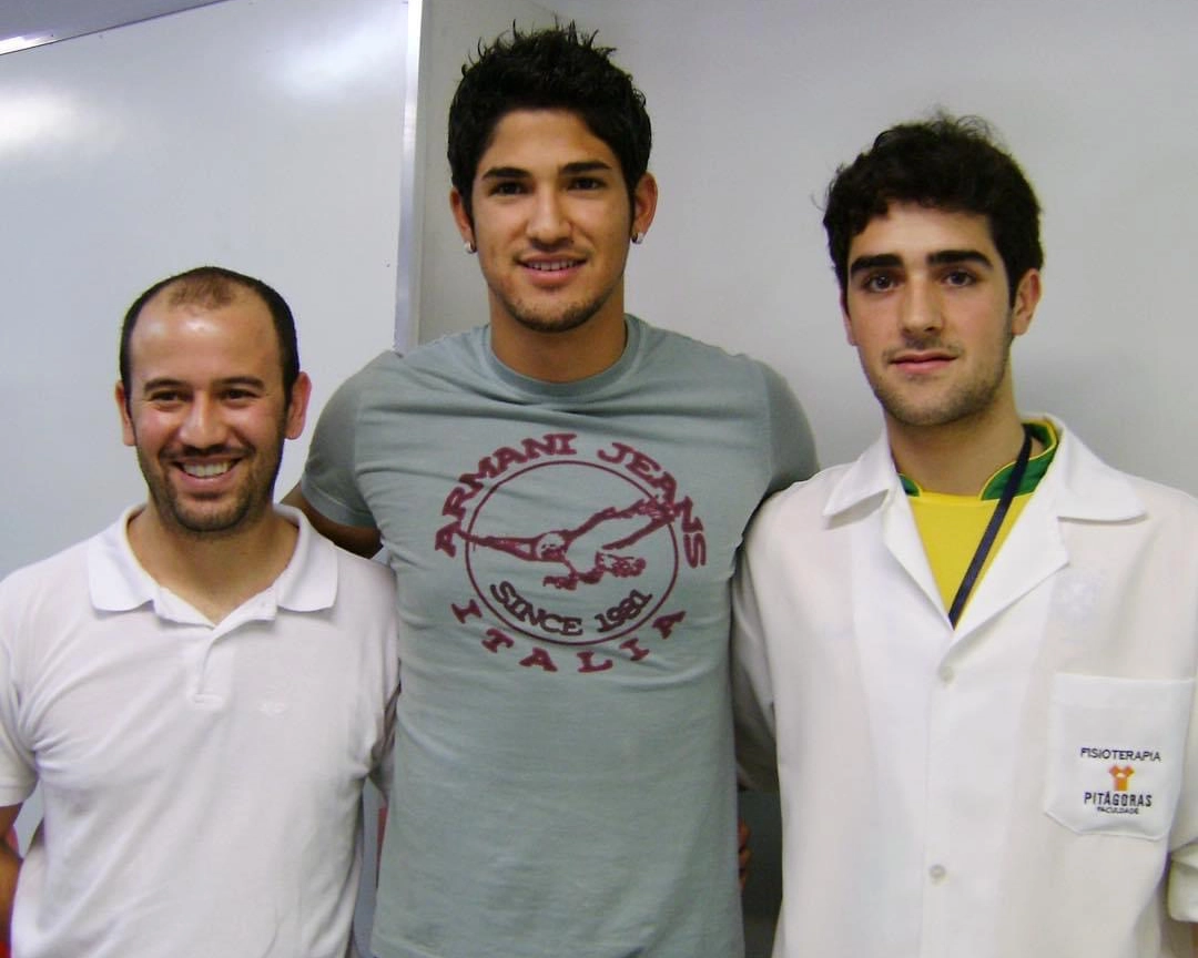A primeira lembrança me leva a 2008, quando registrei um momento especial com meu amigo e mentor Rômulo Frank e o jogador Túlio de Melo, na Faculdade Pitágoras.